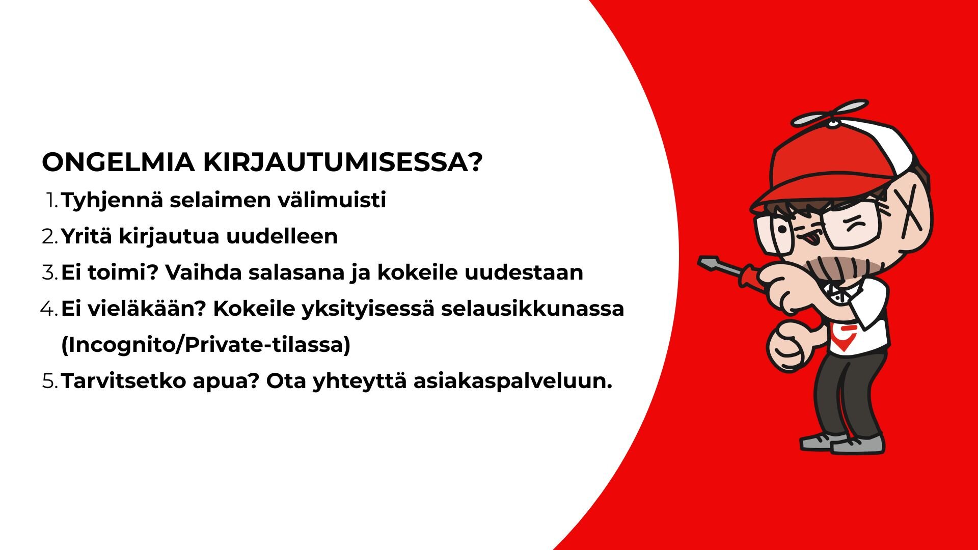 Kirjautumisessa ja rekisteröitymisessä on ilmennyt ongelmia