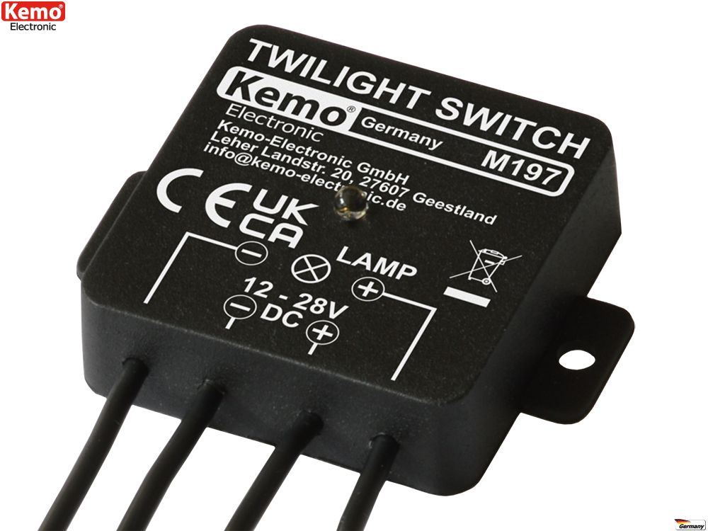 - Klikkaa tarkemmat tiedot https://www.kemo-electronic.de/en/Light-Sound/Switches/Modules/M197-Twilight-Switch-12-28-V-DC.php