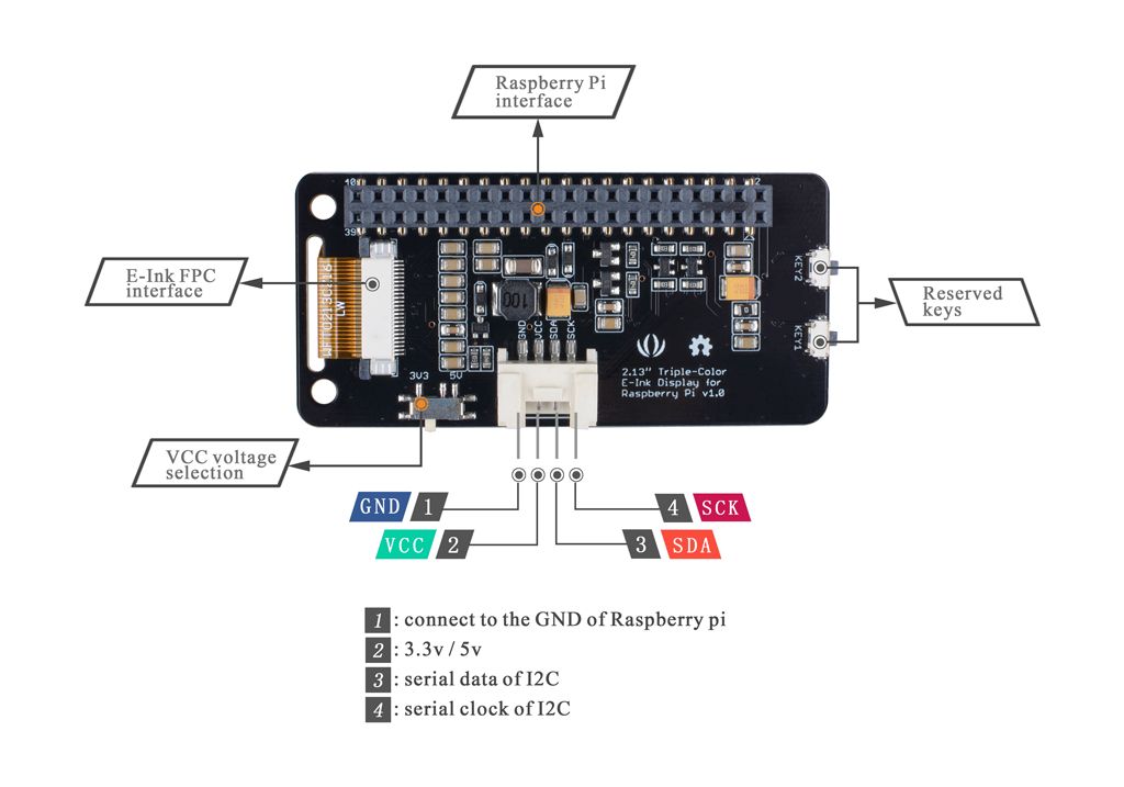 This module is high contrast, wide viewing angle triple-color e ink Display for Raspberry Pi which can display the image without electricity.