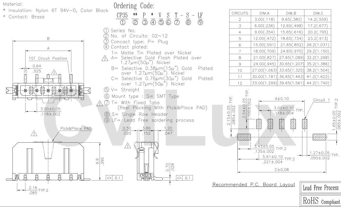 - Tuotepolku Etusivu Elgood edustuksetCviluxCvilux CP35 3.0mm power 3,0mm 1x3pole smd male vertical smd tabs Sn