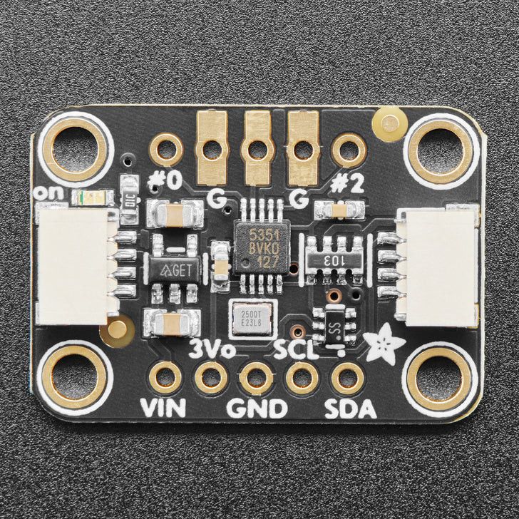 Adafruit Si5351A - kellogeneraattori tuottaa jopa kolme riippumatonta 8 kHz–160 MHz taajuutta tarkalla 25 MHz kristallireferenssillä. I2C-ohjattu, 3V/5V yhteensopiva ja helppo liittää STEMMA QT/Qwiic -liitännöillä.