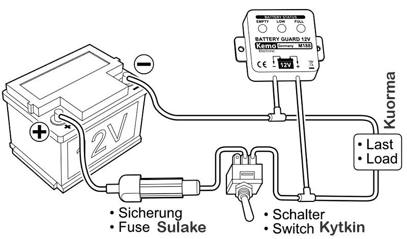 - Klikkaa tarkemmat tiedot https://www.kemo-electronic.de/en/Car/Modules/M188-Battery-Guard-12-V.php