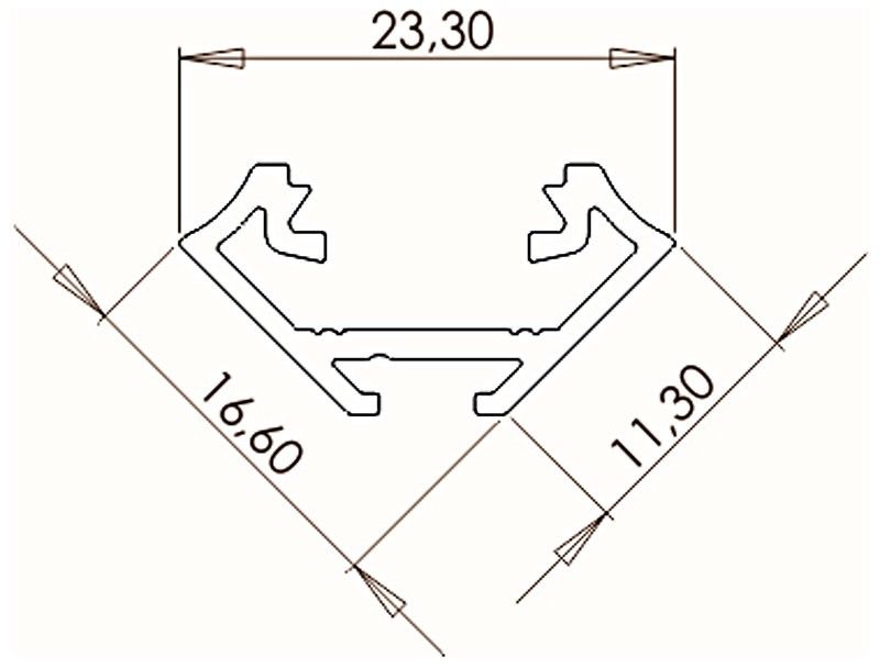 ALU PROFIILILISTA LED-NAUHALLE KULMA HOPEA 2m