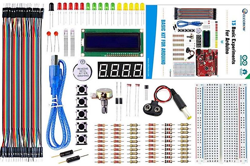 - Klikkaa tarkemmat tiedot https://www.elecrow.com/beginner-basic-kit-for-arduino-with-guide-book-p-609.html