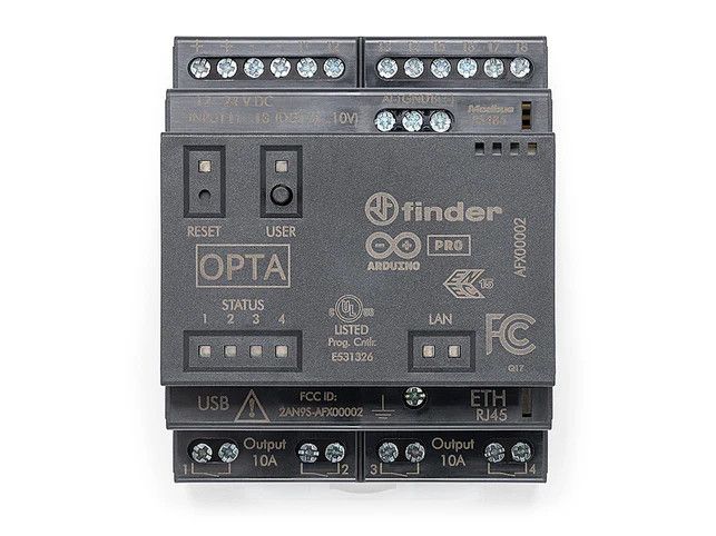 - Tuotepolku Etusivu KehityskortitArduinoArduino® Pro Arduino Opta WiFi OHJELMOITAVA LOGIIKKARELE (PLR) WiFi+BLE+RS485+ETHERNET
