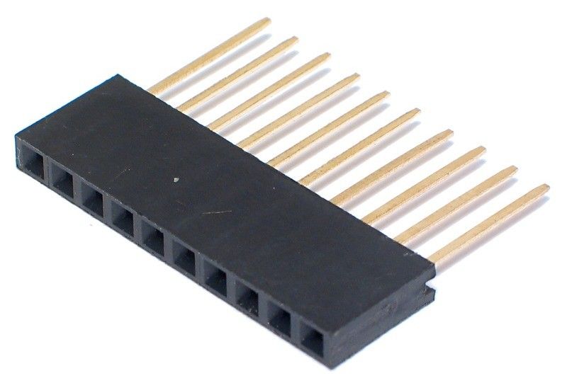 Pitkillä piikeillä varustettu naaraspuolinen yksirivinen piikkirima. Käytetään mm. Arduino lisäkorttien eli shieldien päällekkäinlatomiseen.