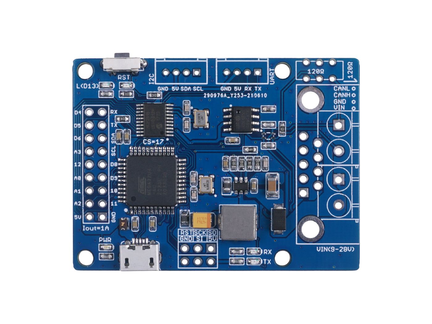 CANBed - Arduino CAN-BUS Development Kit embeds an ATmega32U4 chip, which means you don’t need to add other jump wires to another Arduino Board, it is an Arduino board itself plus MCP2515 CAN Bus controller and MCP2551 CAN Bus transceiver!