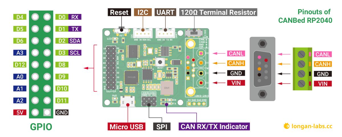 - Tuotepolku Etusivu KehityskortitRaspberry PiRaspberry Pi Pico CANBed - Arduino CAN-Bus RP2040 devboard