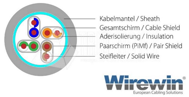 - Täysin suojattu rakenne S/FTP 4x 2x AWG27/7 (100% kupari)