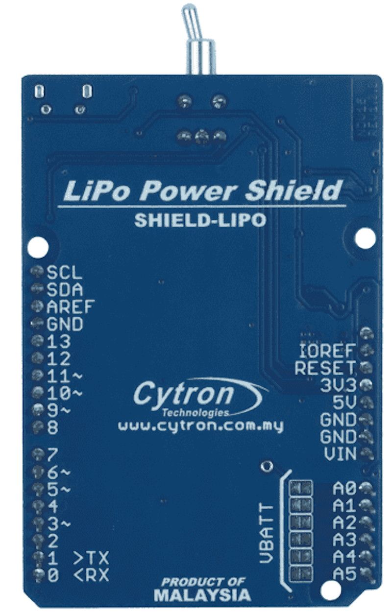 - Tuotepolku Etusivu KehityskortitArduinoArduino lisäkortit (shield) Cytron ARDUINO LiPo Power Shield