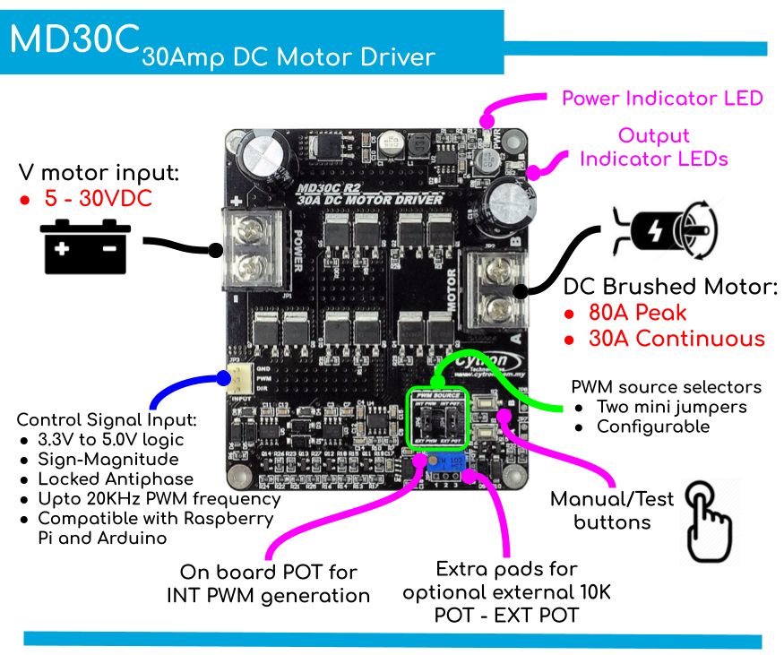 - Klikkaa tarkemmat tiedot https://www.cytron.io/p-30amp-5v-30v-dc-motor-driver