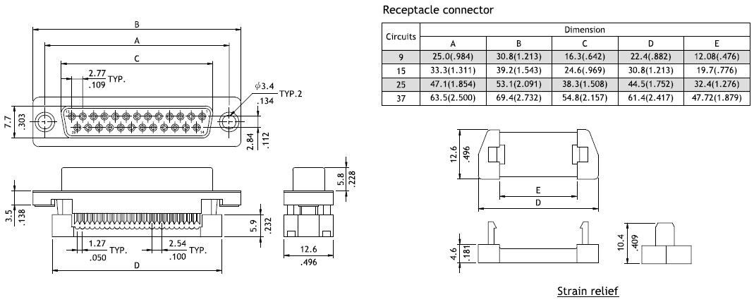 - Standard with Strain-relief Option 3.5mm holes or riveted nuts insert available