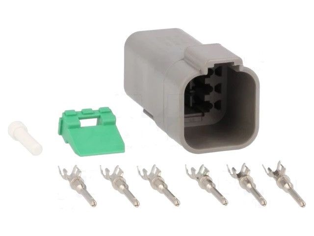 Deutsch S-DT 06-6 P - 6-napainen liitinrunko lukituslevyllä ja tiivistetulpilla.