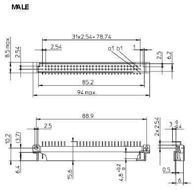 - Tuotepolku Etusivu LiittimetSekalaiset liittimet DIN 41612 64-pin A+B kulma uros