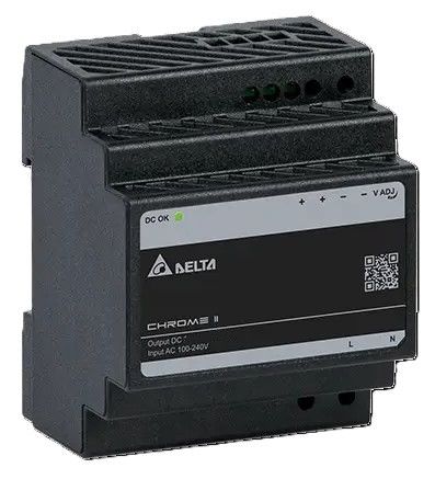 Delta CHROME II sarjan DRC-24V100W1RZ - Eristysluokka II DIN-kiskohakkuri muovikotelolla.