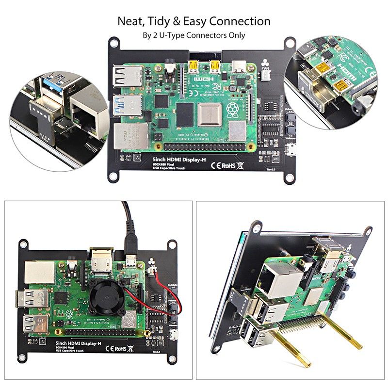 It is designed especially for Raspberry Pi. Raspberry Pi could be mounted on the back of the monitor perfectly. Just plug and play! Simply connect Raspberry Pi with an HDMI connector and a USB connector for touch and power. Also, with 2 bracket sticks, it can easily support the display.