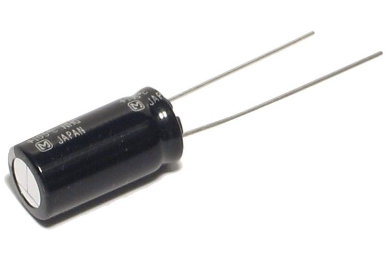 - pystyasennettava yleiskäyttöinen elektrolyyttikondensaattori (ELKO) piirikortille