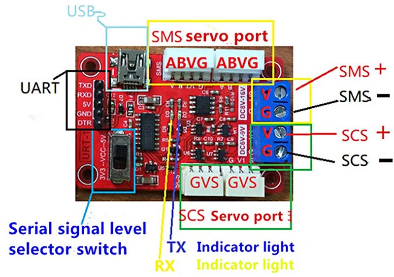 - Tuotepolku Etusivu KomponentitSähkömekaaniset komponentitMoottoritServot Feetech SCS SERVON OHJAINKORTTI
