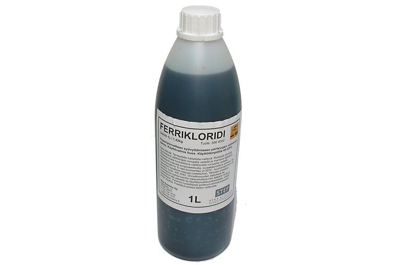 - Tuotepolku Etusivu TarvikkeetPiirilevyprotoiluPiirilevytarvikkeet FERRIKLORIDI KUPARILEVYJEN SYÖVYTYKSEEN (1 litran pullo)