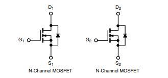Yhdessä kotelossa N- ja P-kanavan fetit.