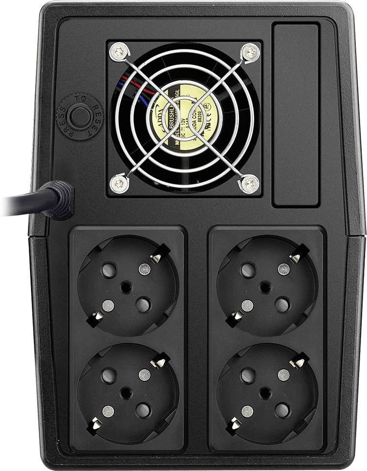 FSP FP1500 - 1500VA (900W) line-interaktiivinen UPS varavirtalähde kahdella 12V 9Ah akulla. Neljä AVR jännitestabiloitua sukolähtöä.