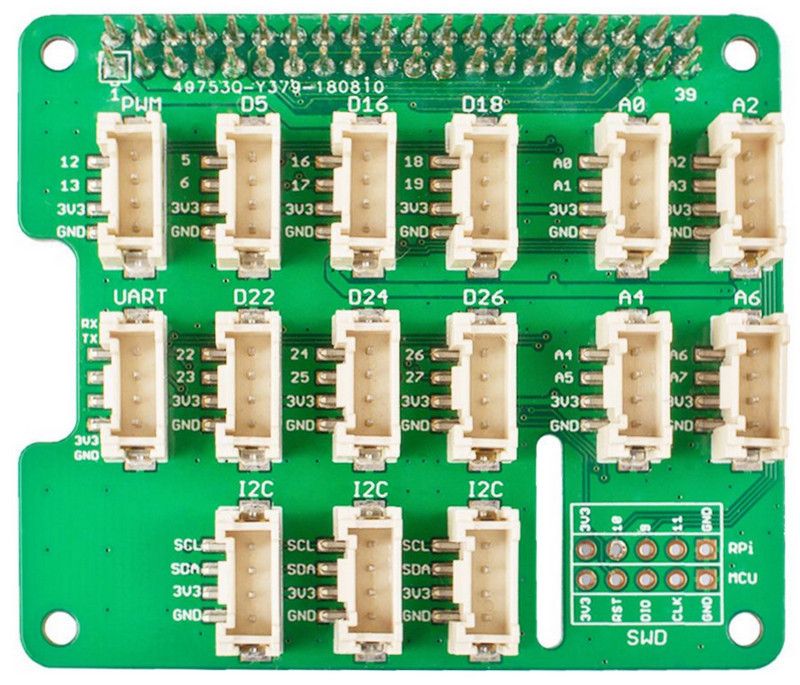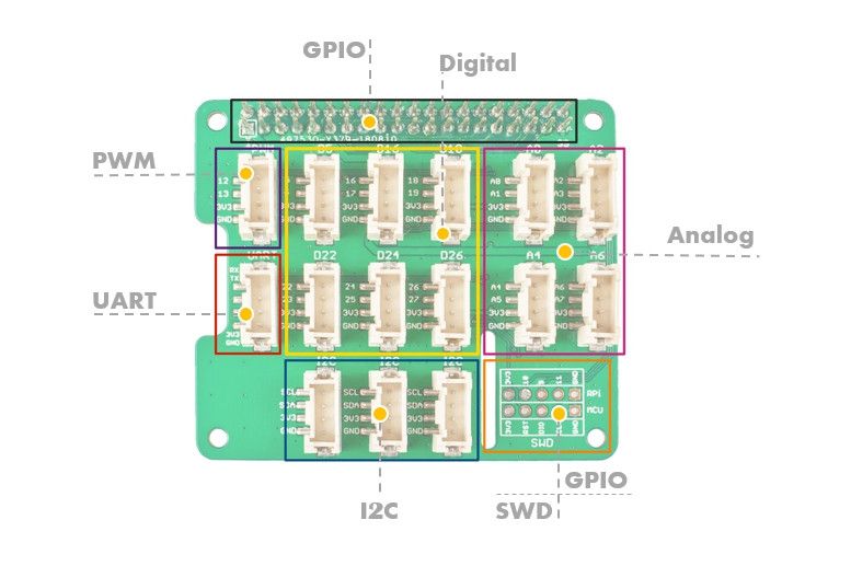 The Grove Base Hat for Raspberry Pi provide Digital/Analog/I2C/PWM/UART port to meet all your needs. With the help of the build-in MCU, a 12-bit 8 channel ADC is also available for Raspberry Pi.