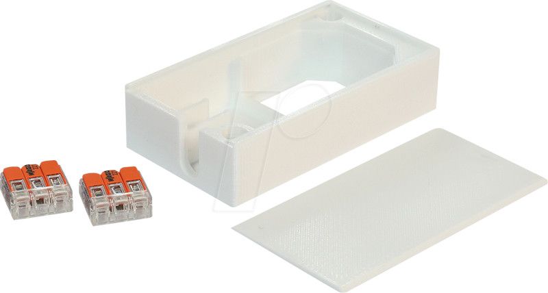 Kotelo Shelly 1L / Dimmer2 / RGBW2 - relekytkimille. Sisältää 2kpl WAGO 221-413-liittimiä.