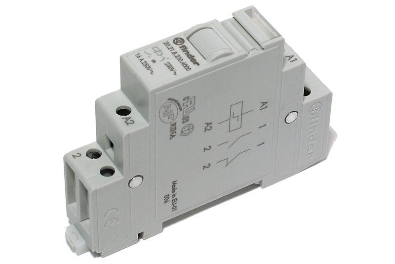 - Klikkaa tarkemmat tiedot https://www.findernet.com/en/worldwide/series/20-series-modular-step-relays-16a/type/type-2021-modular-step-relay-16a/