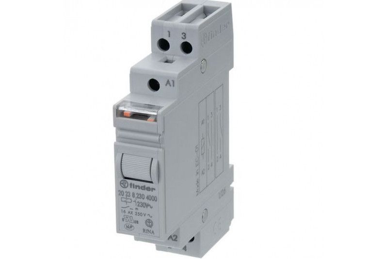 - Klikkaa tarkemmat tiedot https://www.findernet.com/en/worldwide/series/20-series-modular-step-relays-16a/type/type-2021-modular-step-relay-16a/