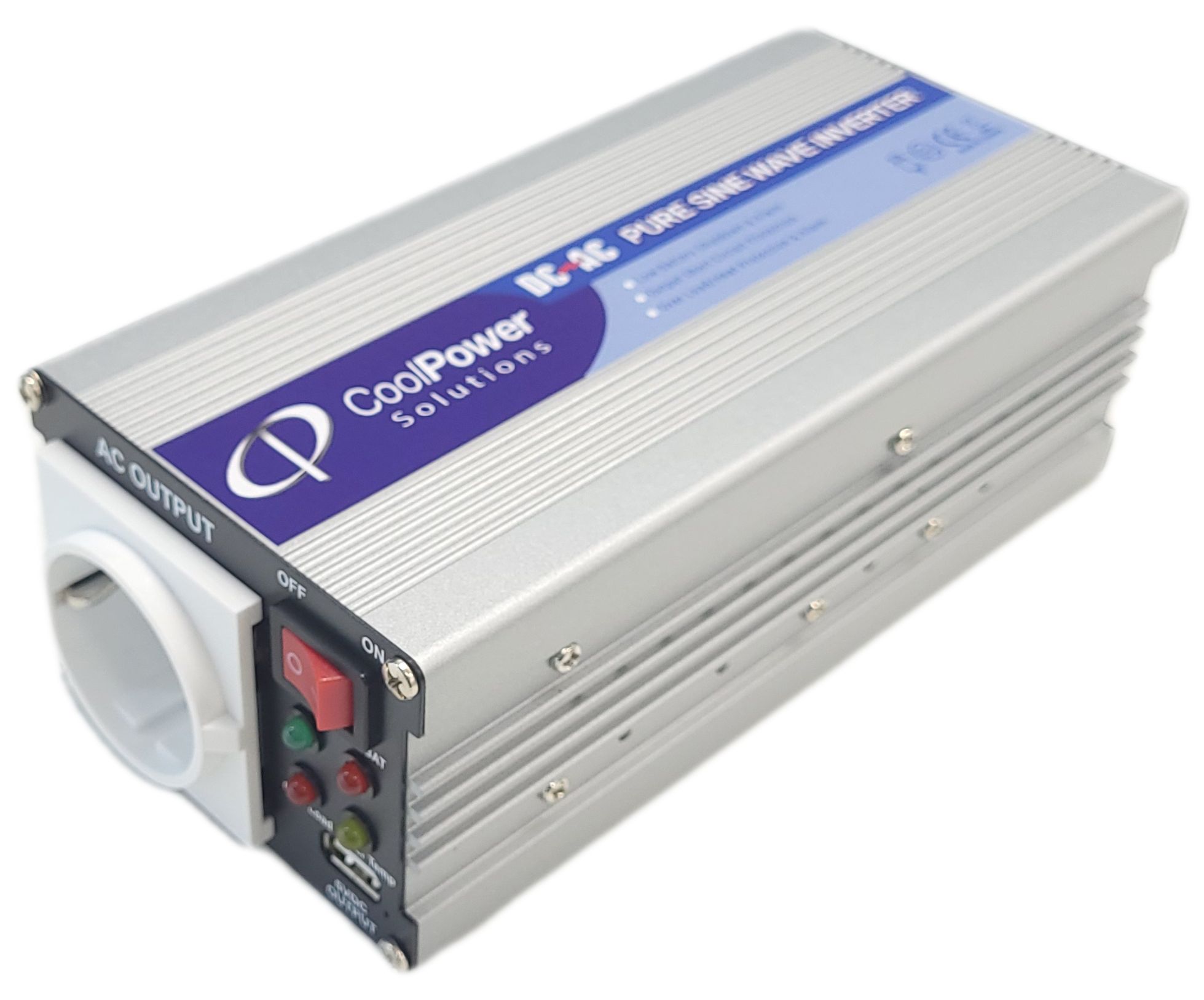 LC-12-300-USB on 12V siniaaltoinvertteri, joka tarjoaa 300 W:n jatkuvan tehon 12 VDC syöttöjännitteellä ja soveltuu erityisesti herkille elektroniikkalaitteille.