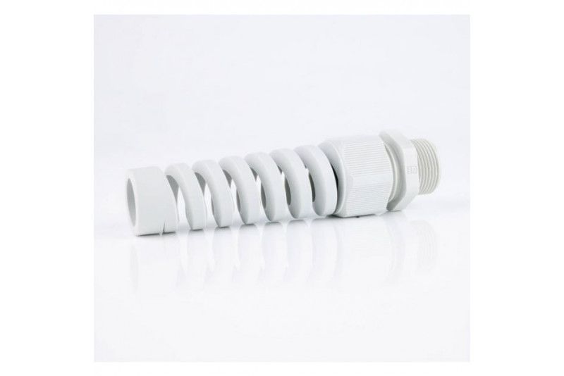 Jacob 50011M16BS7035 - Vaaleanharmaa M16 vedonpoistaja taivutussuojalla, kierteen pituus 15mm.