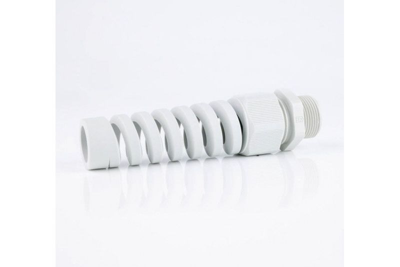 Jacob 50016M20BS7035 - Vaaleanharmaa M20 vedonpoistaja taivutussuojalla, kierteen pituus 15mm.