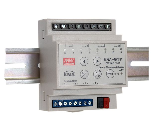 Mean Well KAA-4R4V - 4-kanavainen himmentävä KNX-toimilaite DIN-kiskoon.