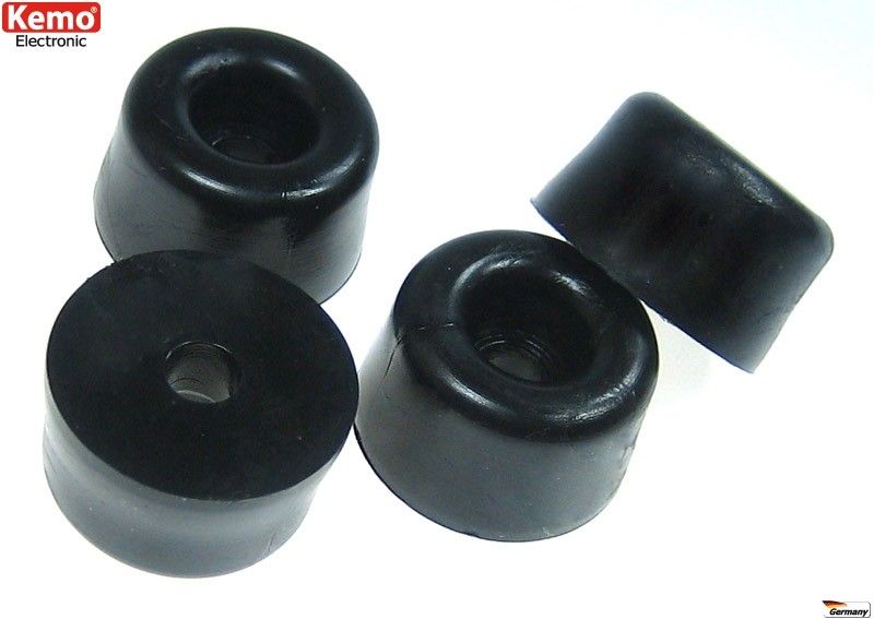 Kemo G050 - pussillinen isoja mustia kumitassuja laitekoteloille. Mitat 22 x 13 mm. Ruuvikiinnitys.