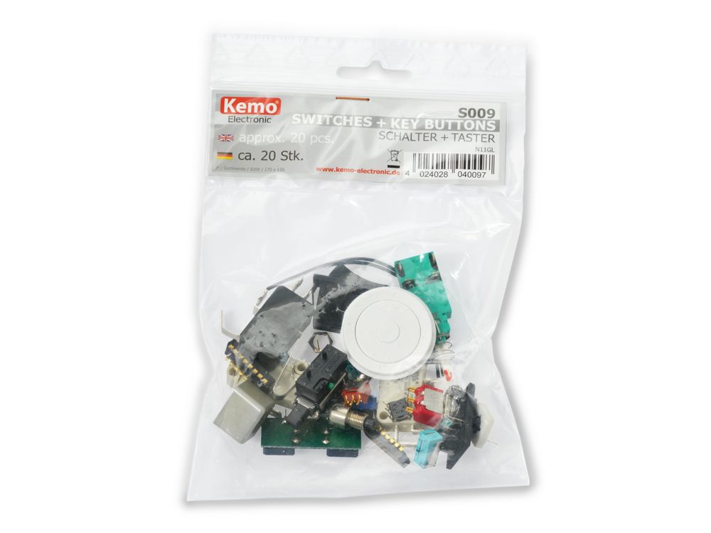 - Klikkaa tarkemmat tiedot https://www.kemo-electronic.de/en/Components/Elements/Switches/S009-Switches-key-buttons-approx-20-pieces.php