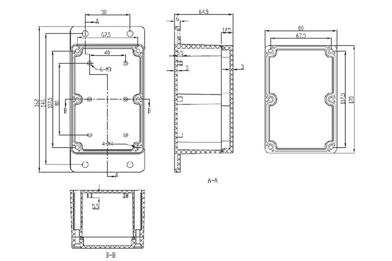 LÄPINÄKYVÄ SEINÄASENNETTAVA MUOVIKOTELO IP65 65x120x80mm