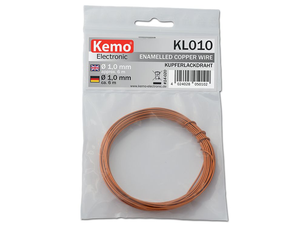 - Klikkaa tarkemmat tiedot https://www.kemo-electronic.de/en/Components/Consumables/Wires/KL010-Enamelled-Copper-Wire-D-approx-1-0-mm.php