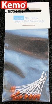 Kemo S097 - pussillinen harrastuskäyttöön sopivia Ø3mm oransseja ledejä, yhteensä n. 10 kpl.