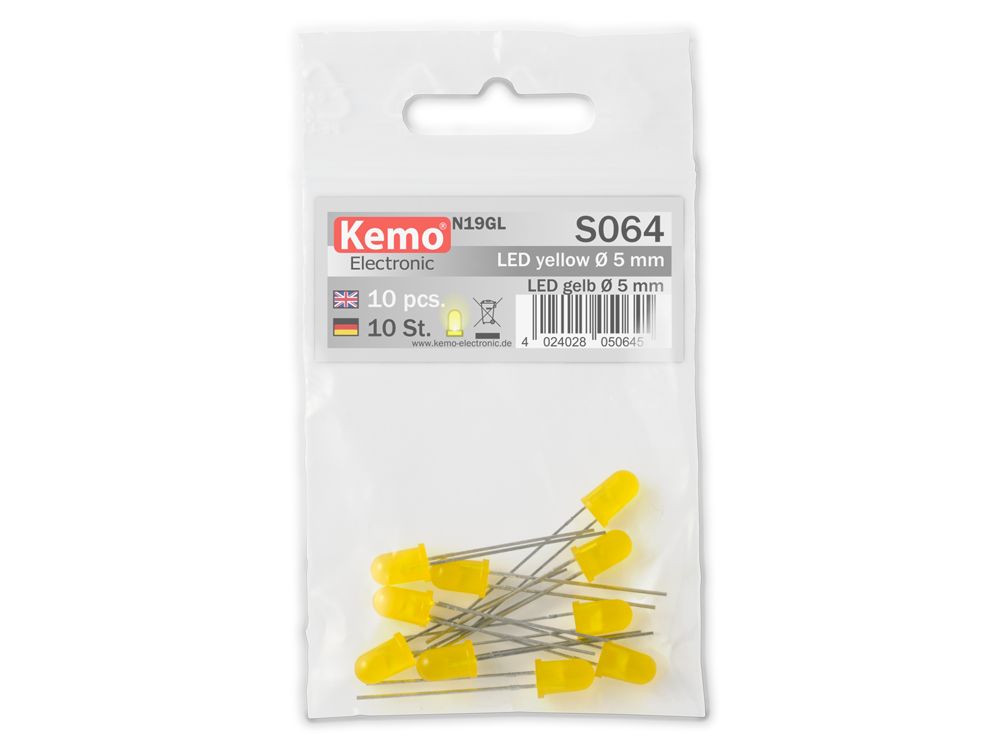 - Klikkaa tarkemmat tiedot https://www.kemo-electronic.de/en/Light-Sound/LED/S064-LED-D-5mm-yellow-approx-10-pieces.php