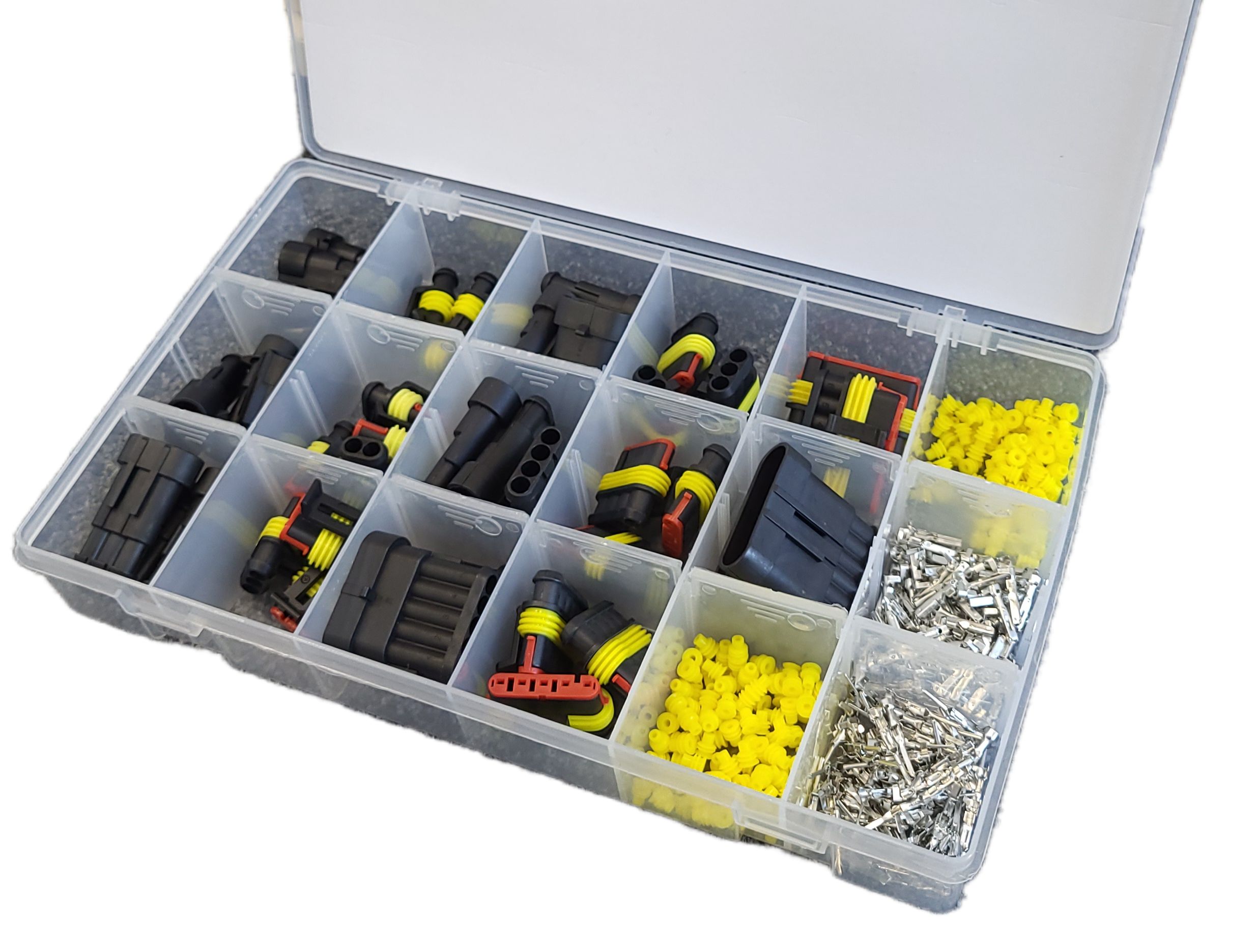 Lajitelma AMP Superseal-yhteensopivia liittimiä, kontakteja ja tiivisteitä