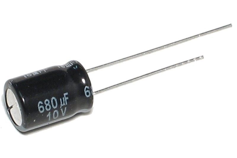 LOW ESR Elektrolyyttikondensaattori 680µF 10V, THT RADIAL 8x12mm