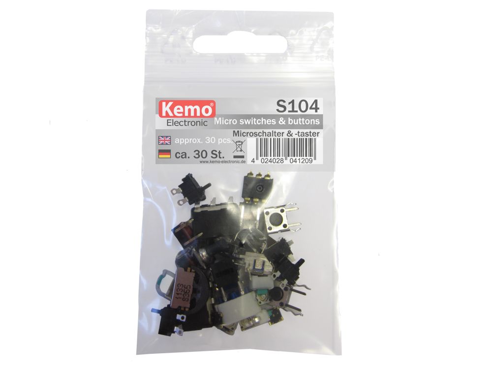 - Klikkaa tarkemmat tiedot https://www.kemo-electronic.de/en/Components/Elements/Switches/S104-Micro-switches-and-buttons-approx-30-pcs-.php