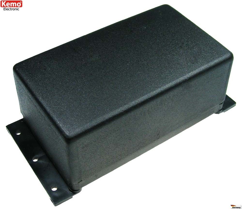 Kemo G086 - musta muovikotelo 120 x 70 x 50 mm. Mukana asennuslipat seinäasennusta varten.