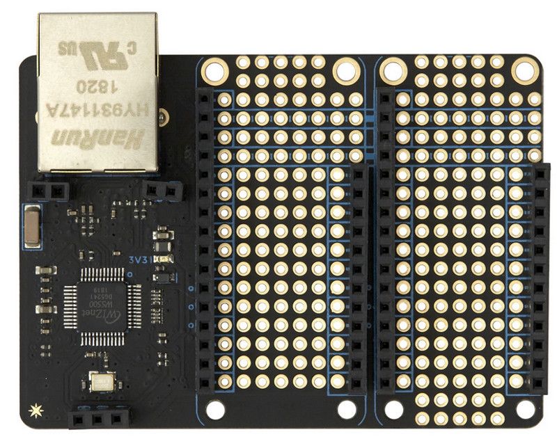 Based on the WIZnet W5500 chip, this side-by-side FeatherWing maintains great RF performance even while adding Ethernet connectivity to any Particle Gen 3 device.