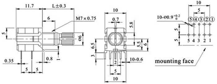 - akseli Ø 6 x 7 mm