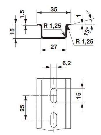 - Tuotepolku Etusivu KomponentitMekaaniset komponentitDIN-kiskot PINTAKÄSITELTY KORKEA 35mm DIN-KISKO 25cm