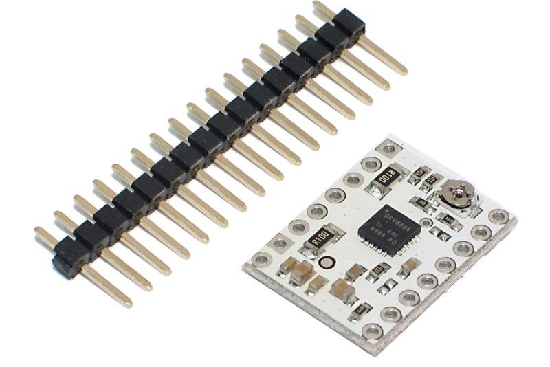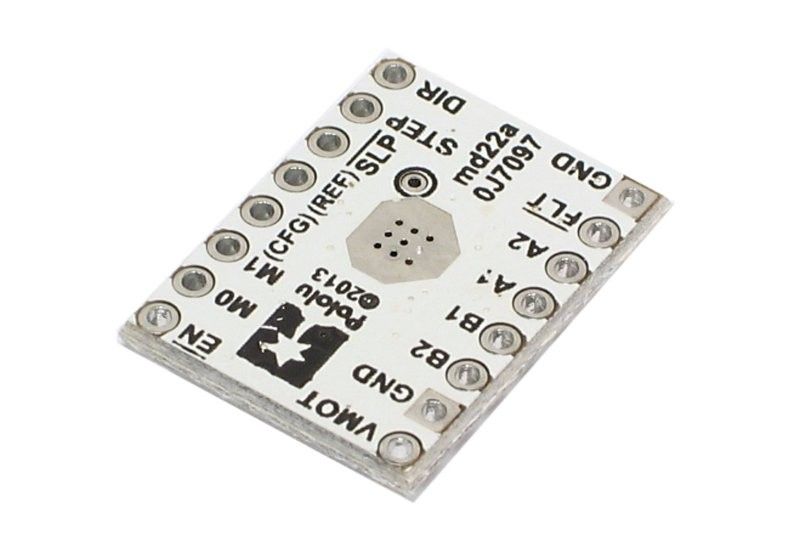 DRV8834 ohjainpiiri tukee yhtä bipolaarista askelmoottoria. Mikroaskellukset: 1/1, 1/2, 1/4, 1/8, 1/16, ja 1/32. Levyllä pieni trimmeri virranohjausta varten. Tarkemmat tiedot linkin takaa.