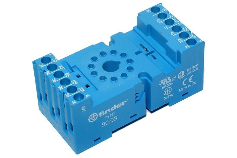 - Klikkaa tarkemmat tiedot https://www.findernet.com/en/worldwide/series/90-series-sockets-for-60-and-88-series-relay-and-timers/type/type-9003-socket-with-box-clamp-terminals/