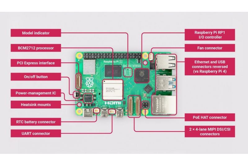 Uusi Raspberry Pi 5 korttitietokone kuudentoista gigan RAM muistilla. Suorittimen suorituskyky on 2-3 kertaa suurempi kuin Raspberry Pi 4:n.