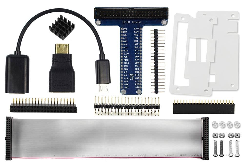 This kit includes USB OTG Host cable, 2x20 Male header strip, 2x20 Male header strip(right angle), 2x20 Female Header, 2x20 Female Header (right angle), Mini HDMI to HDMI Adapter, GPIO kit and Acrylic Case Protector for Raspberry Pi Zero W. The Raspberry Pi Zero is a simplified Raspberry Pi version, so it also streamlined the USB, HDMI, GPIO interface, with this kit we can expand the interface.